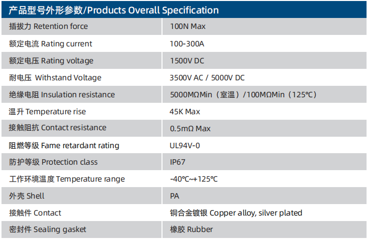 The battery terminal high-voltage connector is a high current connector solution developed specifically for the energy storage market. It has the advantages of fast insertion and removal, safety and reliability, preventing mis-insertion, and saving space, etc.